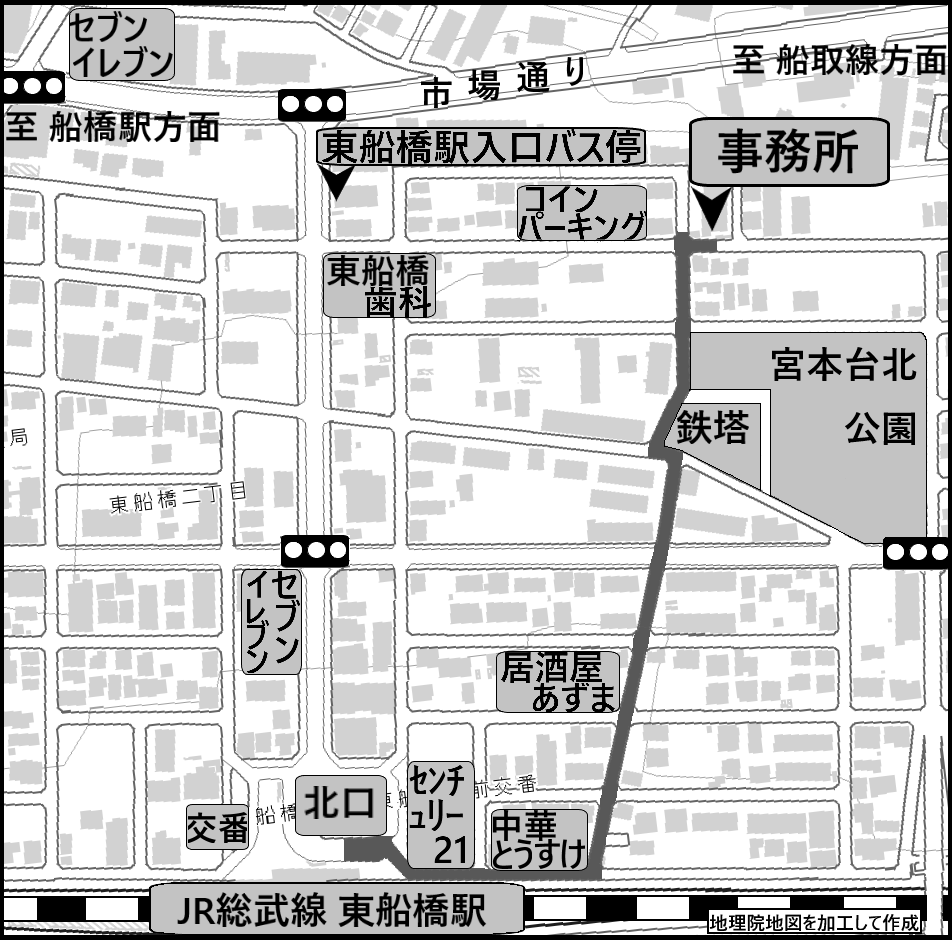 - 東船橋駅の北口出口に出てください。デイリーヤマザキや女性の像がある側です。